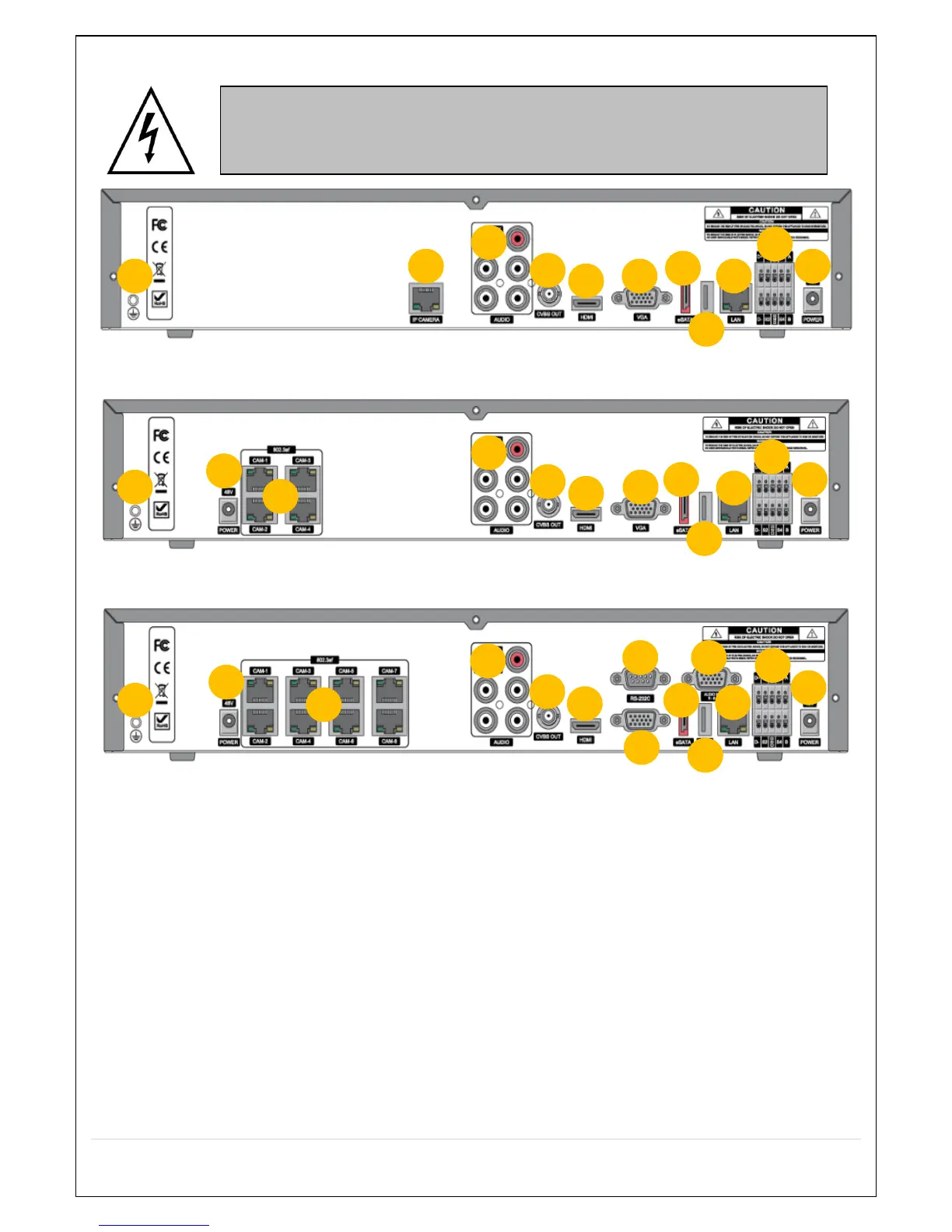 ⑩ AUDIO Port: Audio inputs connections for channels 5-8 or 5-16 through external cable (N8NSP,