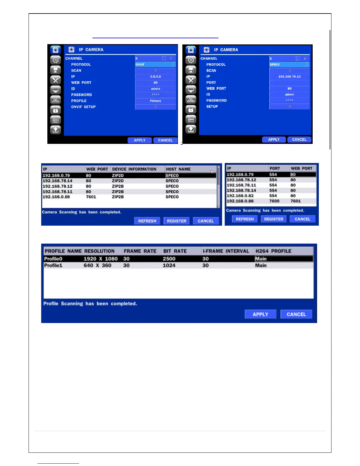 ④ IP cameras using ONVIF protocol require ID, Password and Profile to be correctly entered for