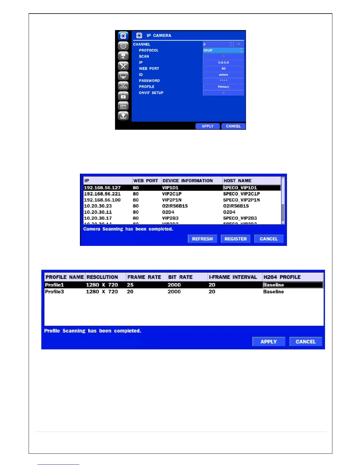 Figure 4.1.2 IP CAMERA Setup Screen (ONVIF)