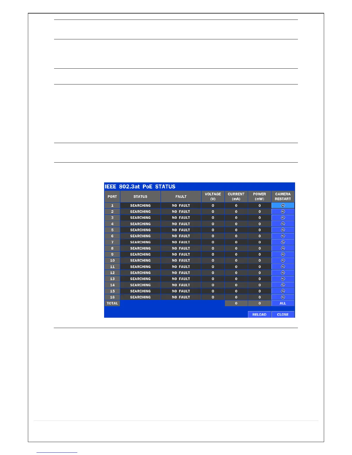 PoE (Power Over Ethernet) Status Monitoring Menu