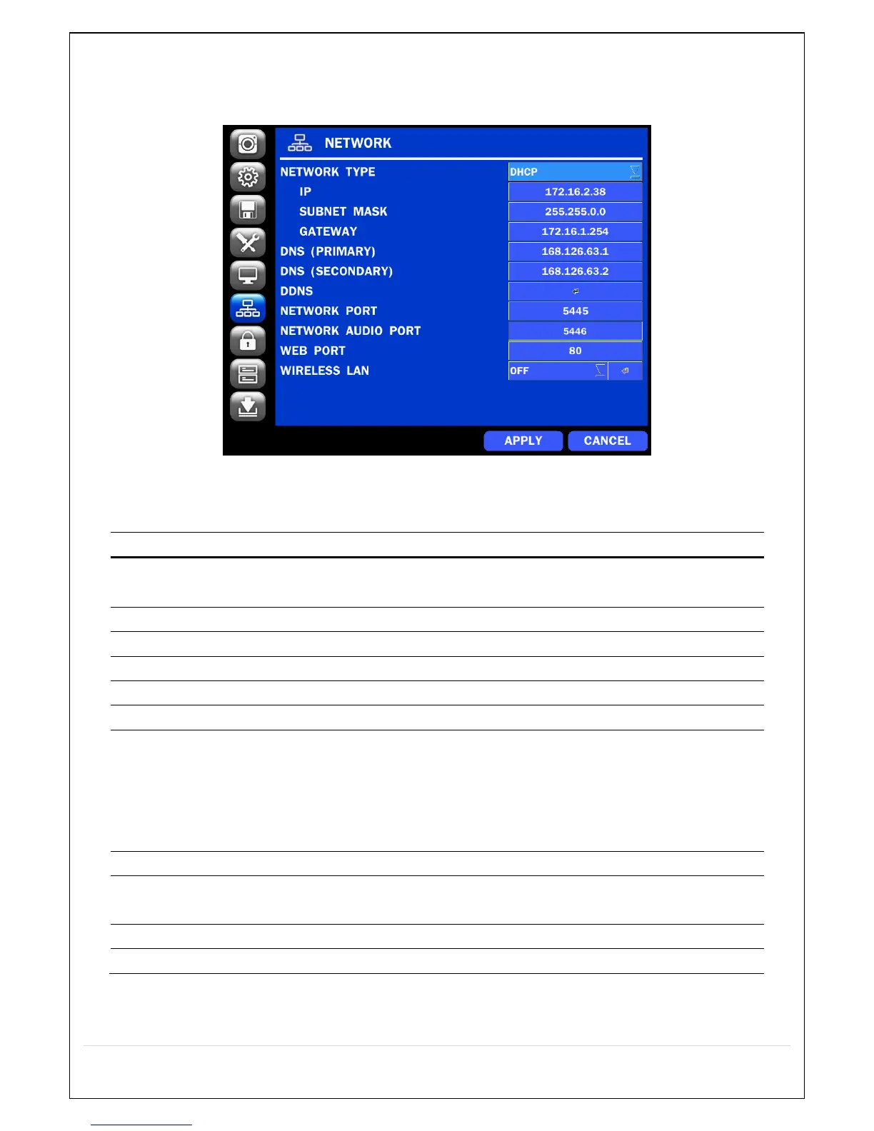 Table 4.6.1. Menu Items in NETWORK Setup Screen