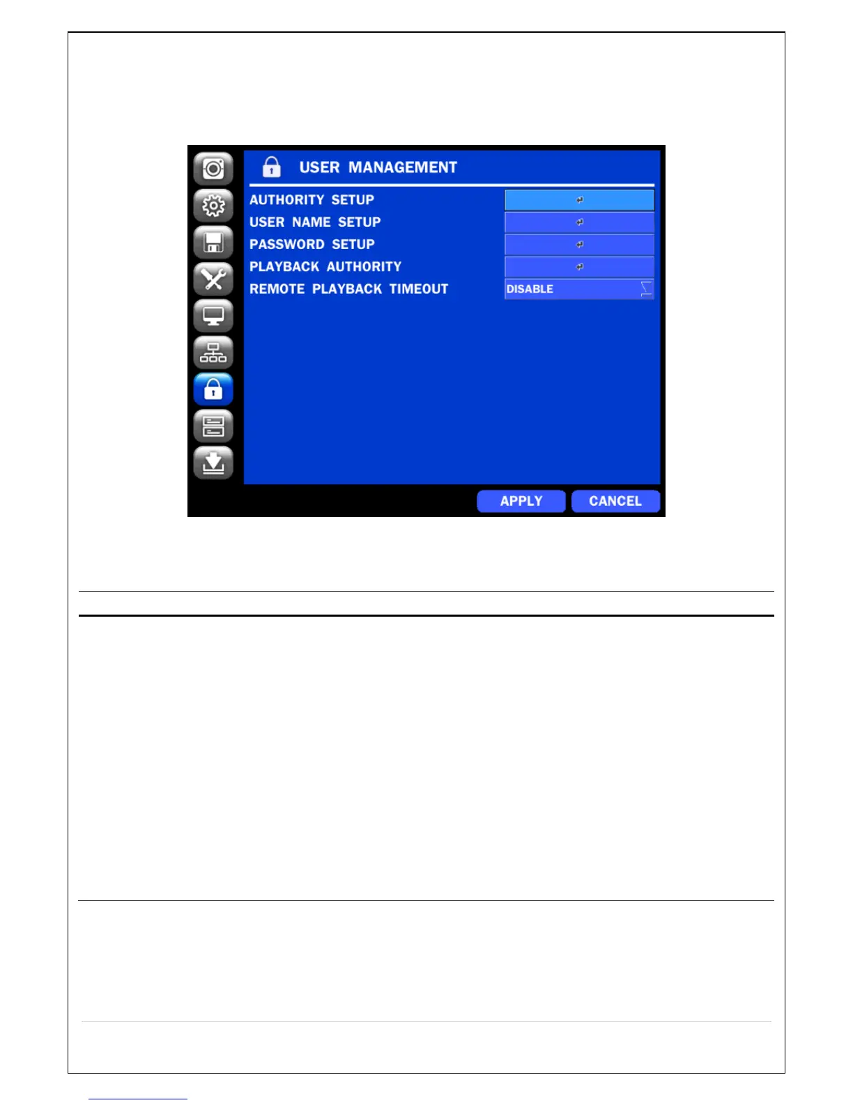 Table 4.7.1. Menu Items in USER MANAGEMENT Setup Screen
