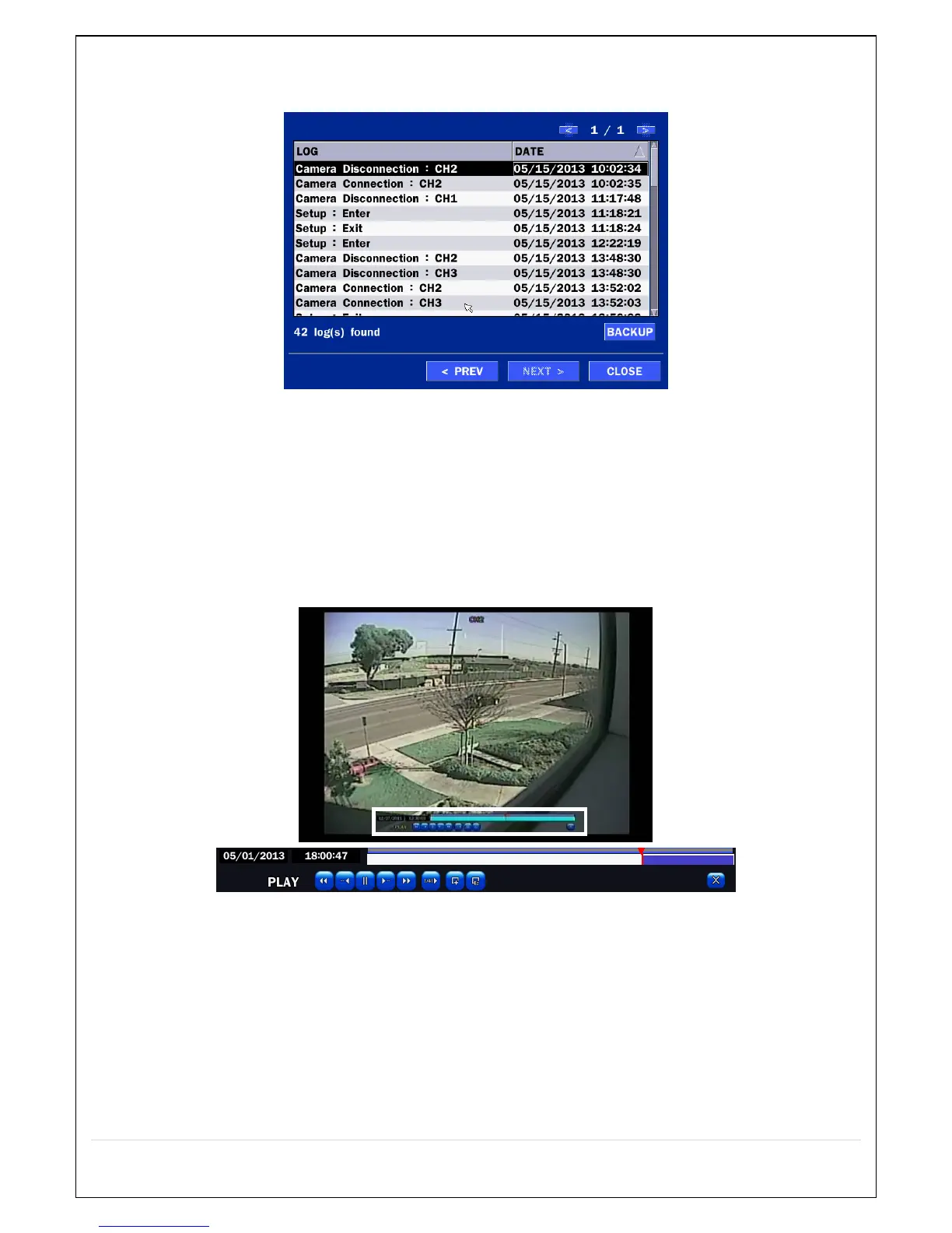 During playback of a recorded event, the mode changes from SEARCH to PLAY. While in PLAY mode, user