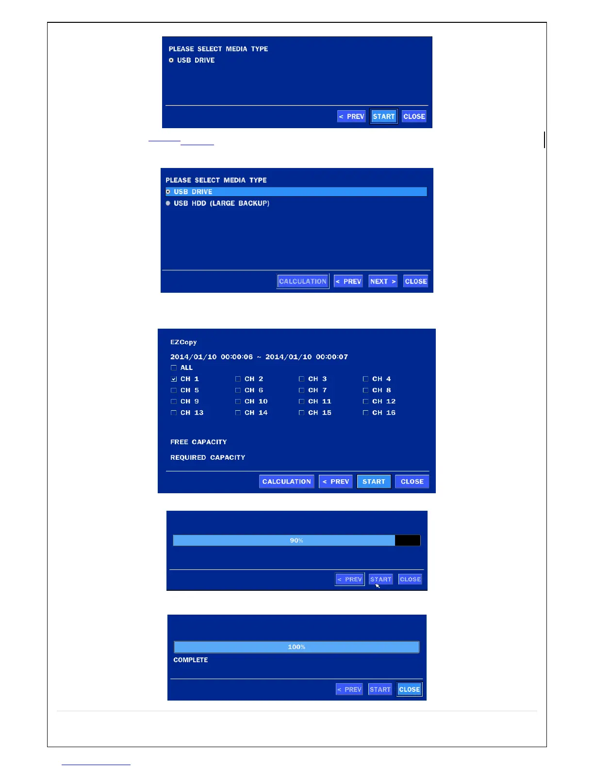 3. Once you select the channel and duration, the system will start to archive the data to the USB drive.