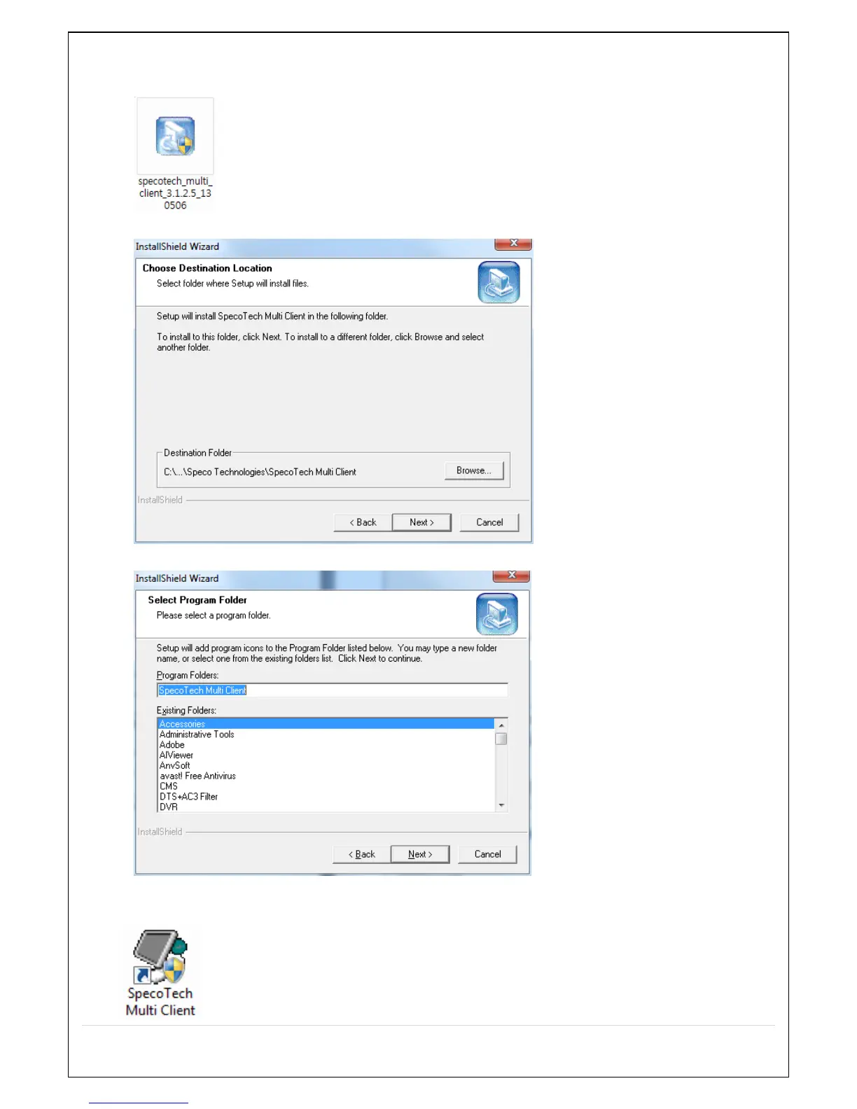 1. Insert the provided CD in the CD drive and double-click “SpecoTech Multi Client (XXXX).exe”
