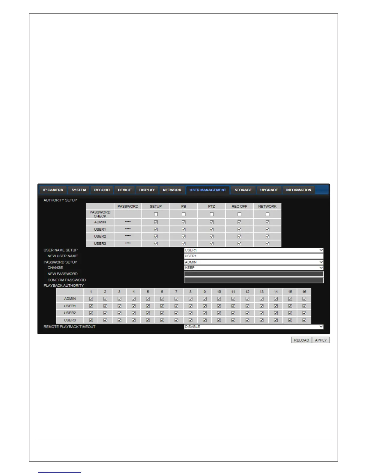 PLAYBACK AUTHORITY: User can select which users have access to which channels.