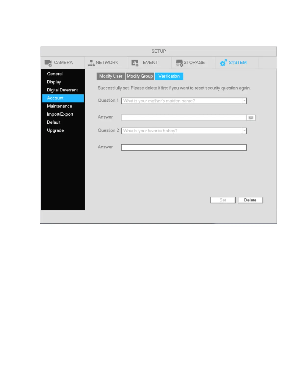 See Figure 4-103. If a password is lost, the security questions can be used to reset the password.