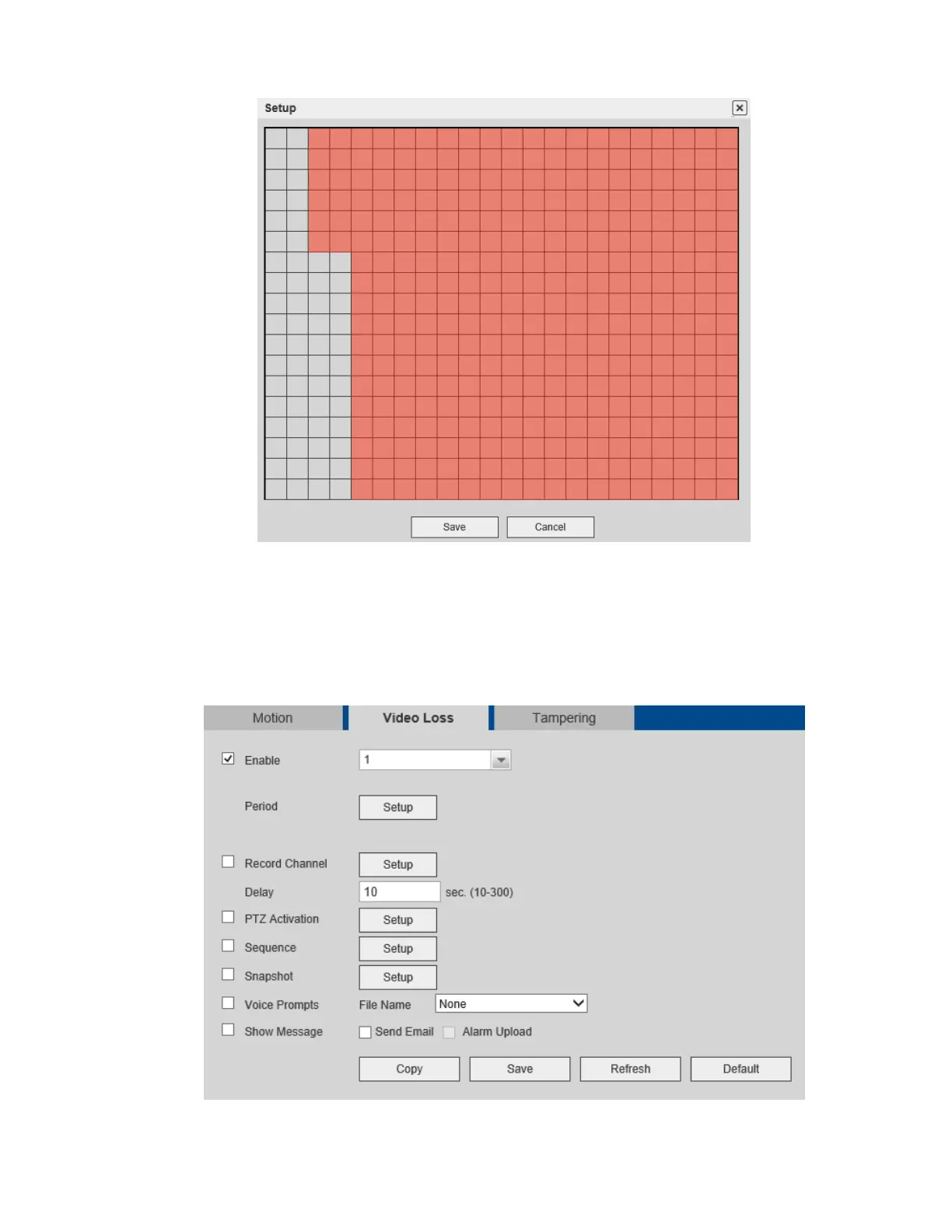 Note that anti-dither, sensitivity, and region setup are not supported for video loss detection.