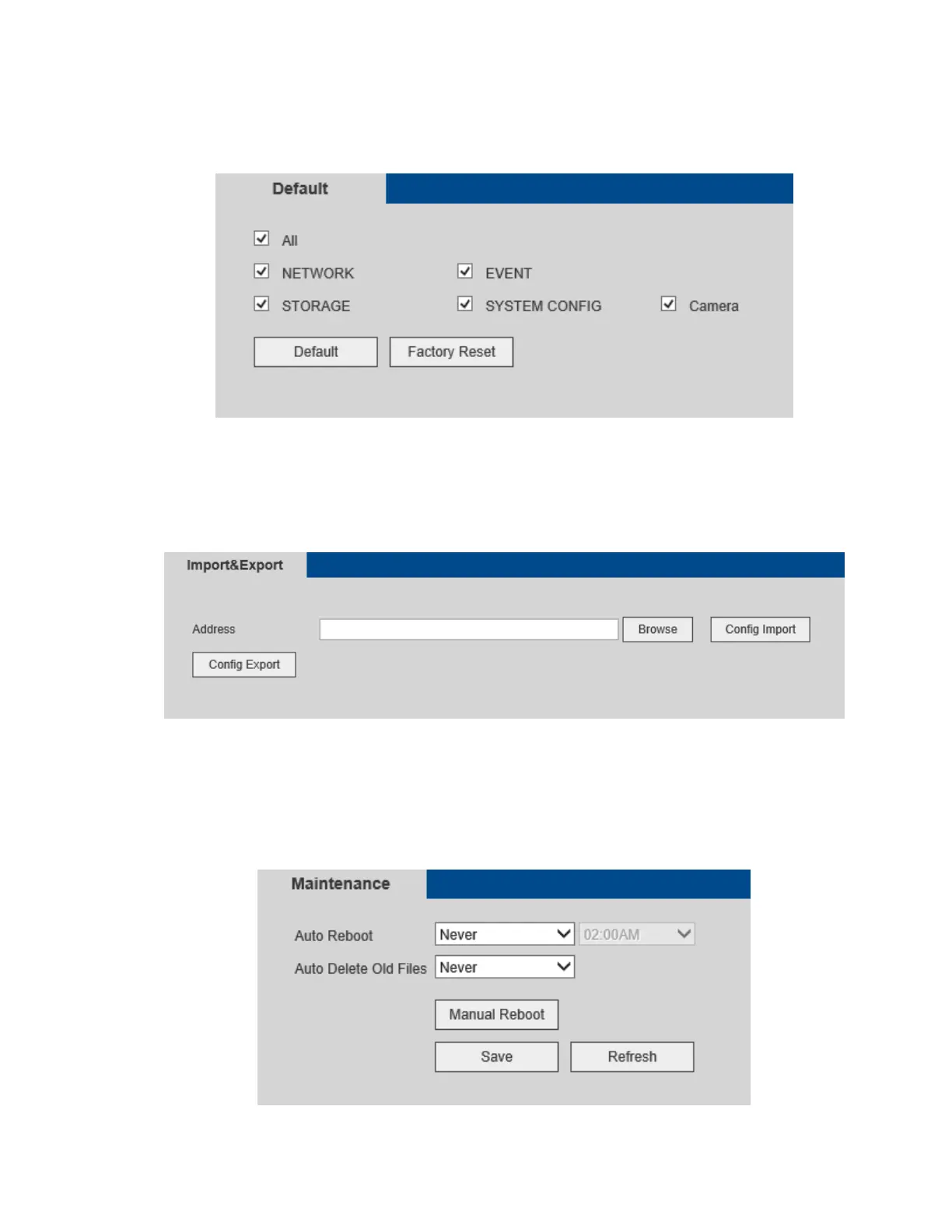 Speco N8NXP - Default; Import;Export; Maintenance