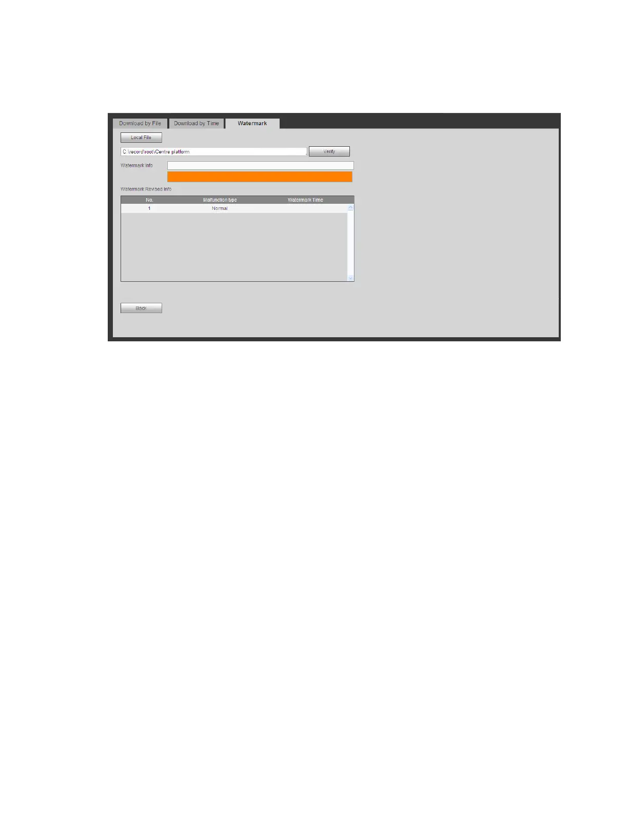 The watermark interface is shown in Figure 5-72. Load a file and then click the Verify button to see if the file