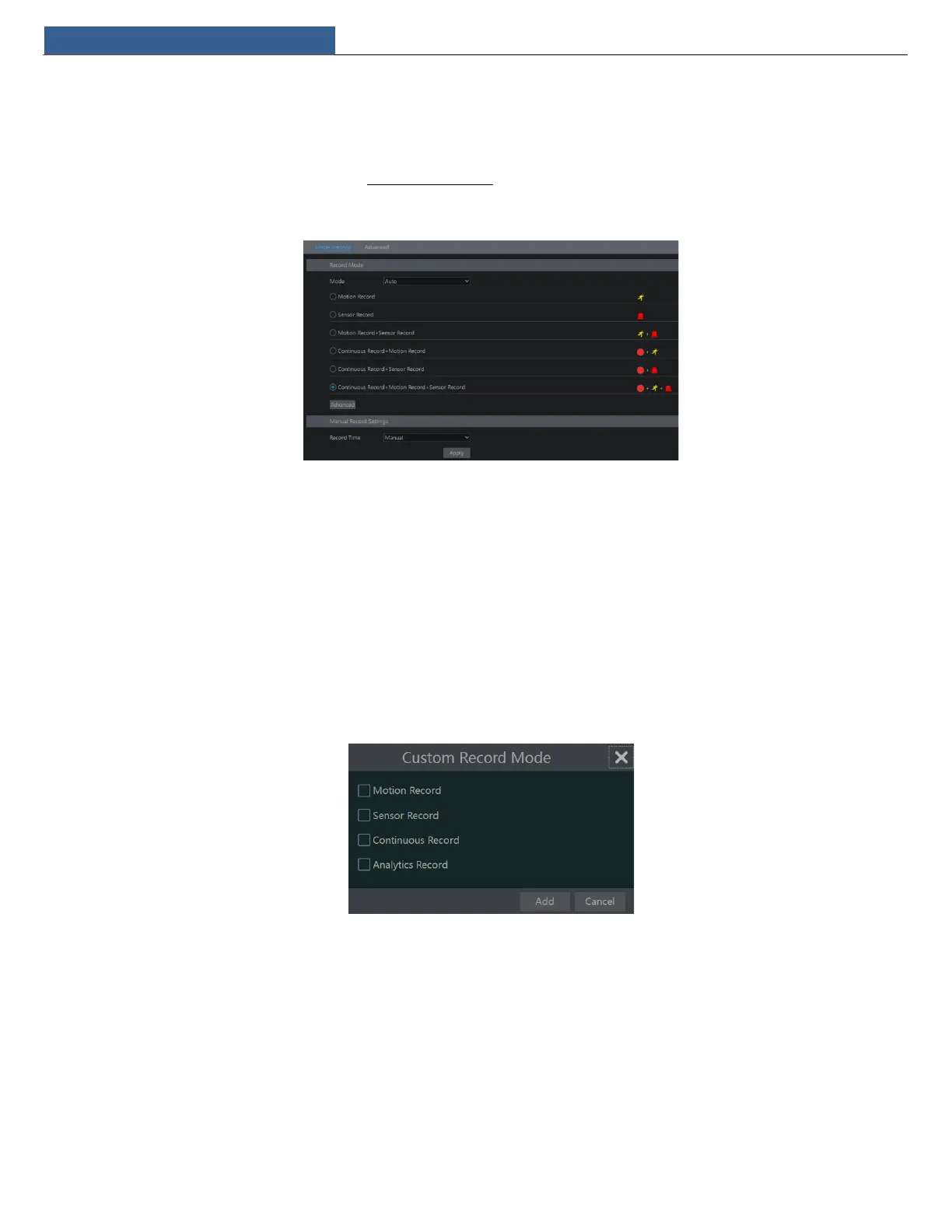 Motion Record+Sensor Record: Motion/sensor alarm record will be enabled when motion/sensor alarm happens.