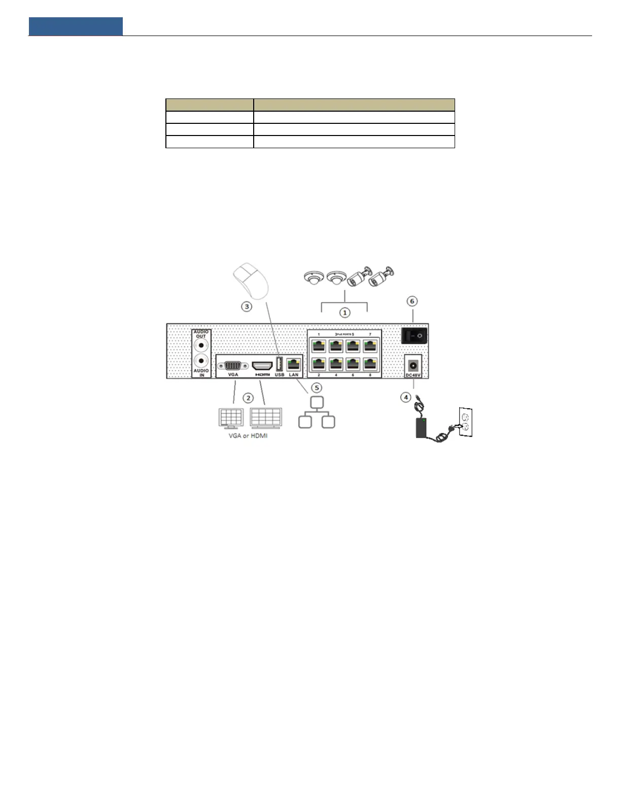 2. Connect a monitor to the recorder via VGA or HDMI cable (not included).