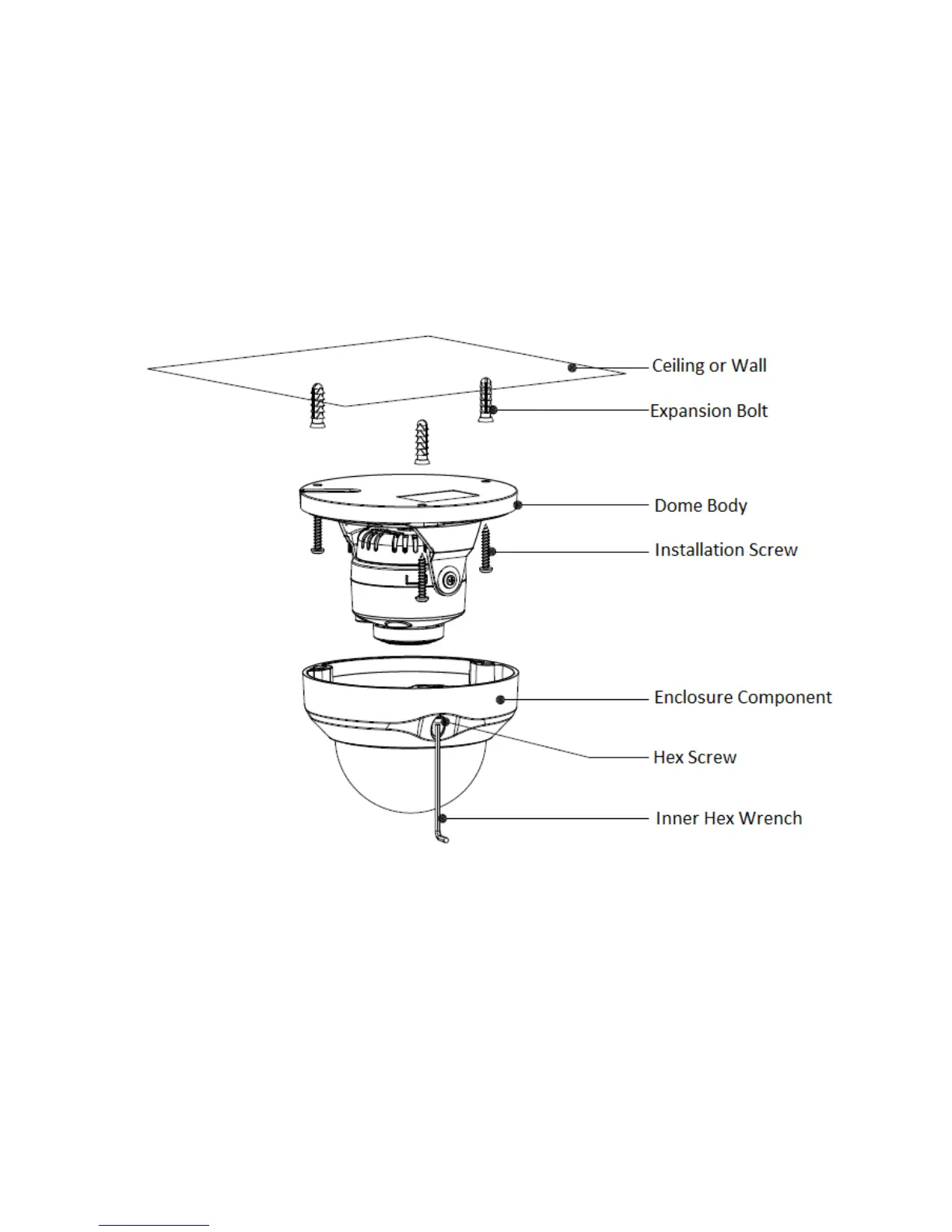 Use inner hex wrench in the accessories bag to open dome enclosure by unfastening three inner