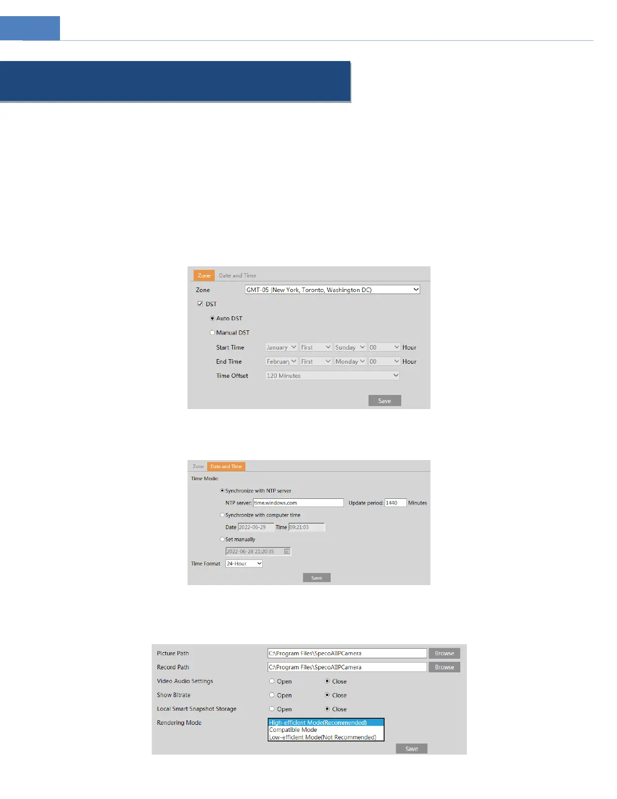 Go to SystemLocal Recording to set up the storage path of captured pictures and recorded videos on the local PC. There is also an