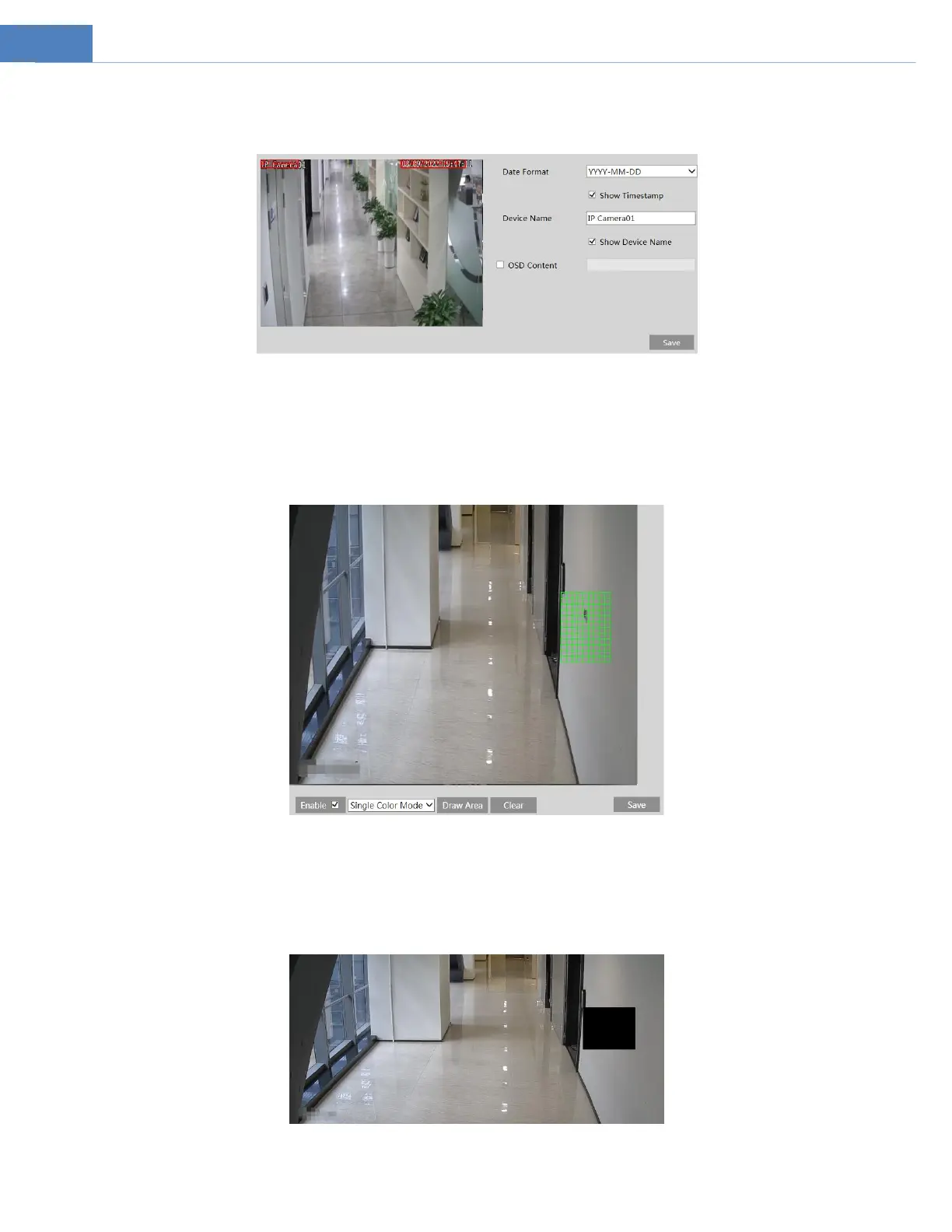 Set time stamp, device name, OSD content and picture overlap here. After enabling the corresponding display and entering the