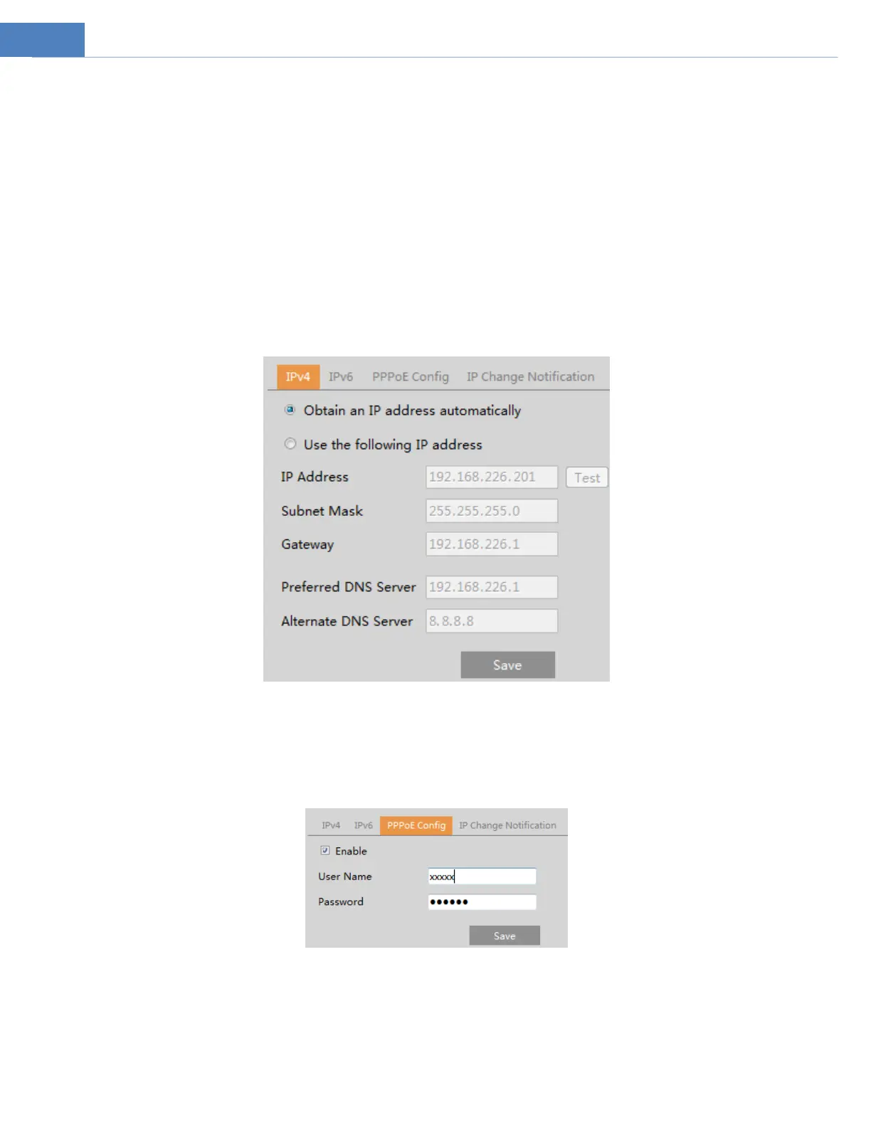 Either method of network connection can be used. If PPPoE is used to connect internet, the camera will get a dynamic WAN IP