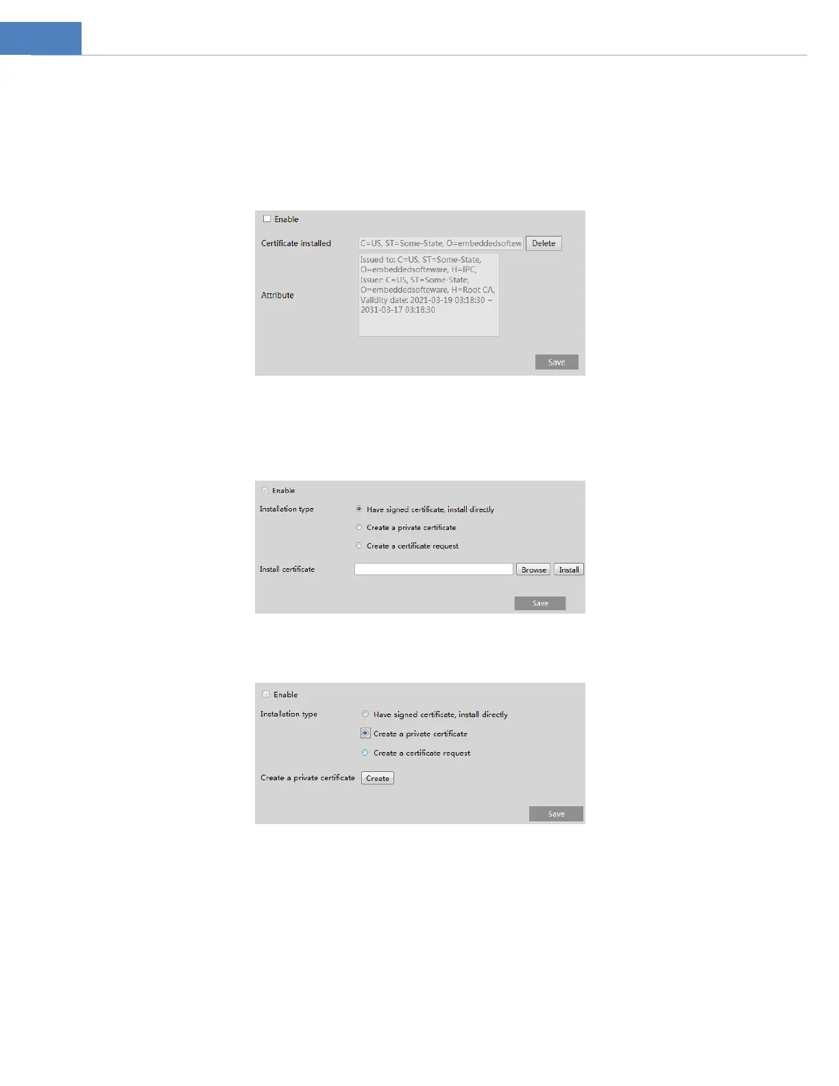 There is a certificate installed by default as shown above. Enable this function and save it. Then the camera can be accessed by