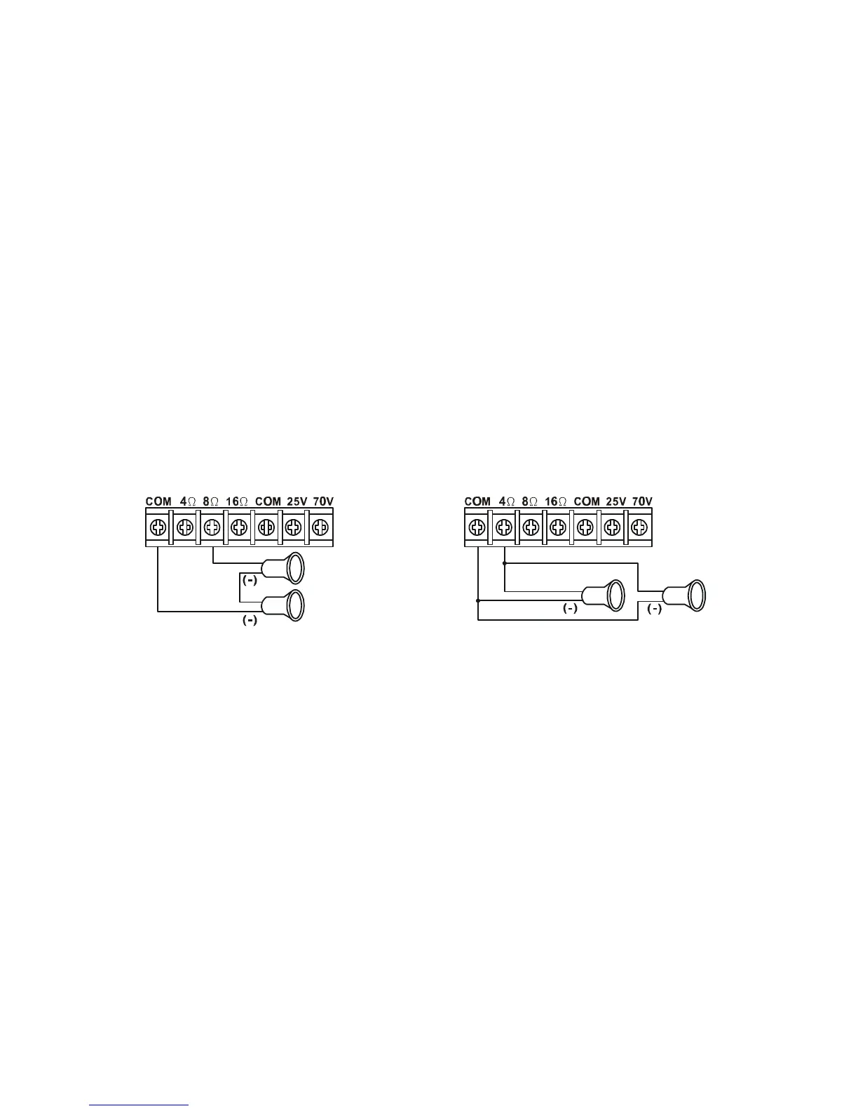 which correspond to the impedance of the speaker(s). One lead must always be connected to the