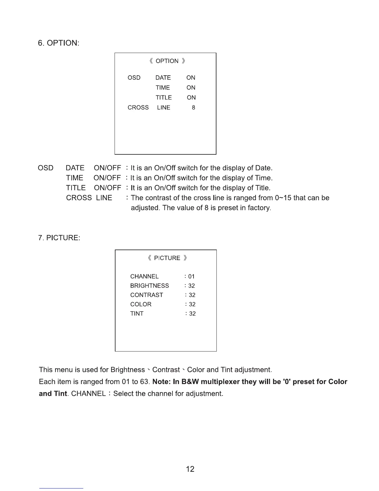 Speco RMX-9CD - Option Settings; Picture Adjustment