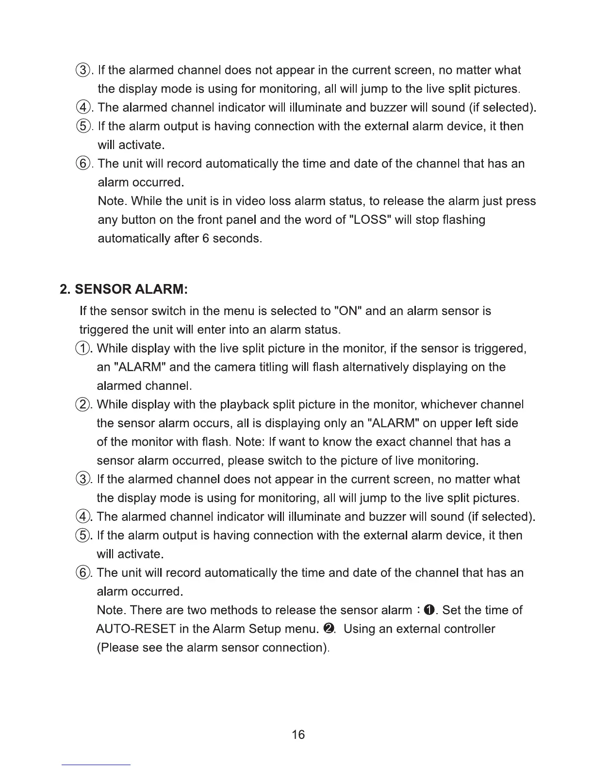 Speco RMX-9CD - Sensor Alarm Acknowledgment