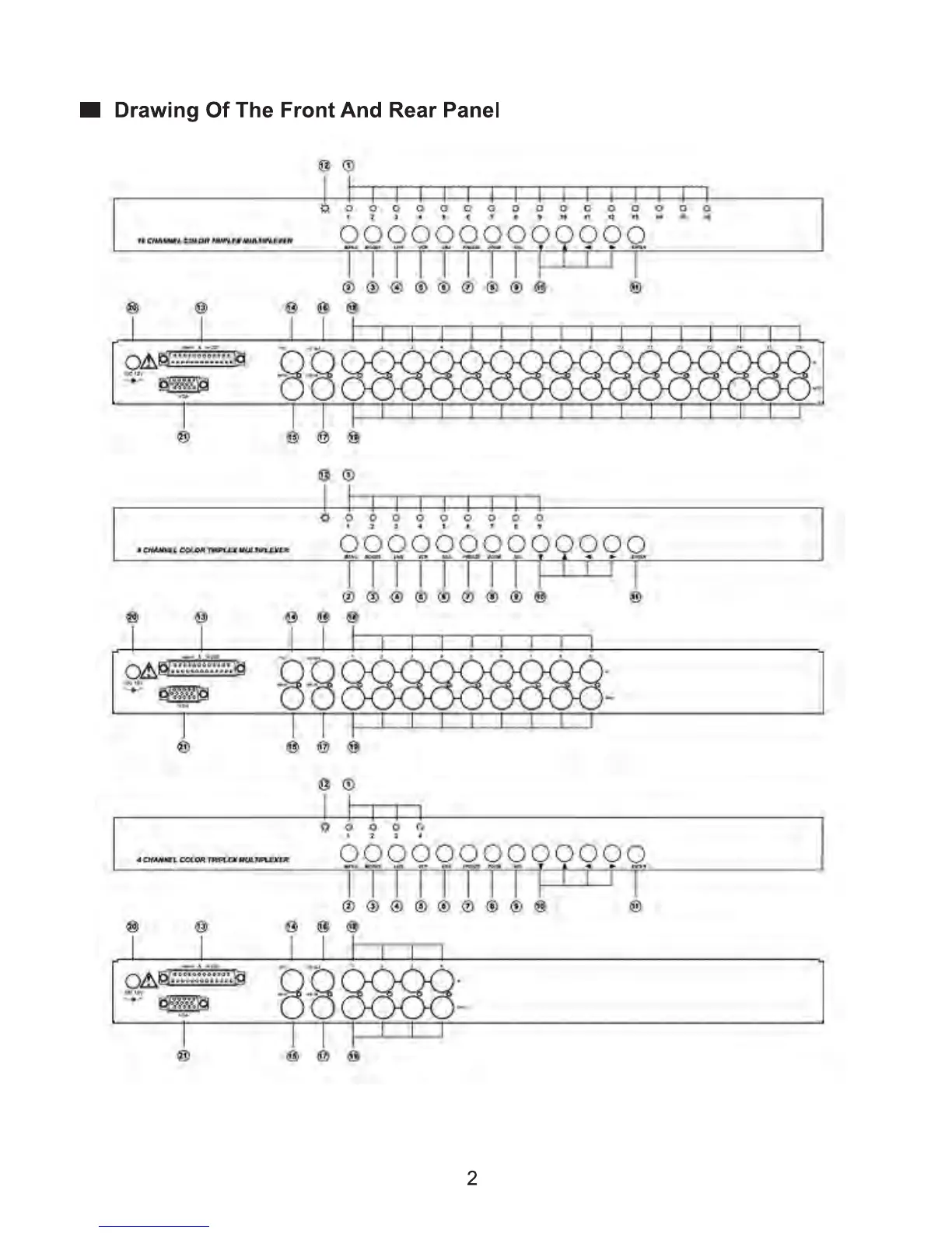 Speco RMX-9CD - Drawing of the Frot and Rear Panel