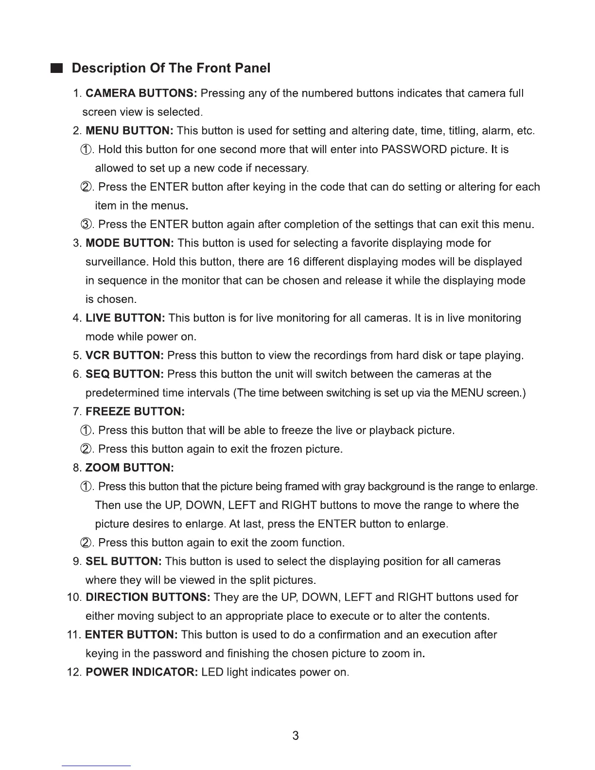 Speco RMX-9CD - Front Panel Controls Description; MENU BUTTON; ZOOM BUTTON