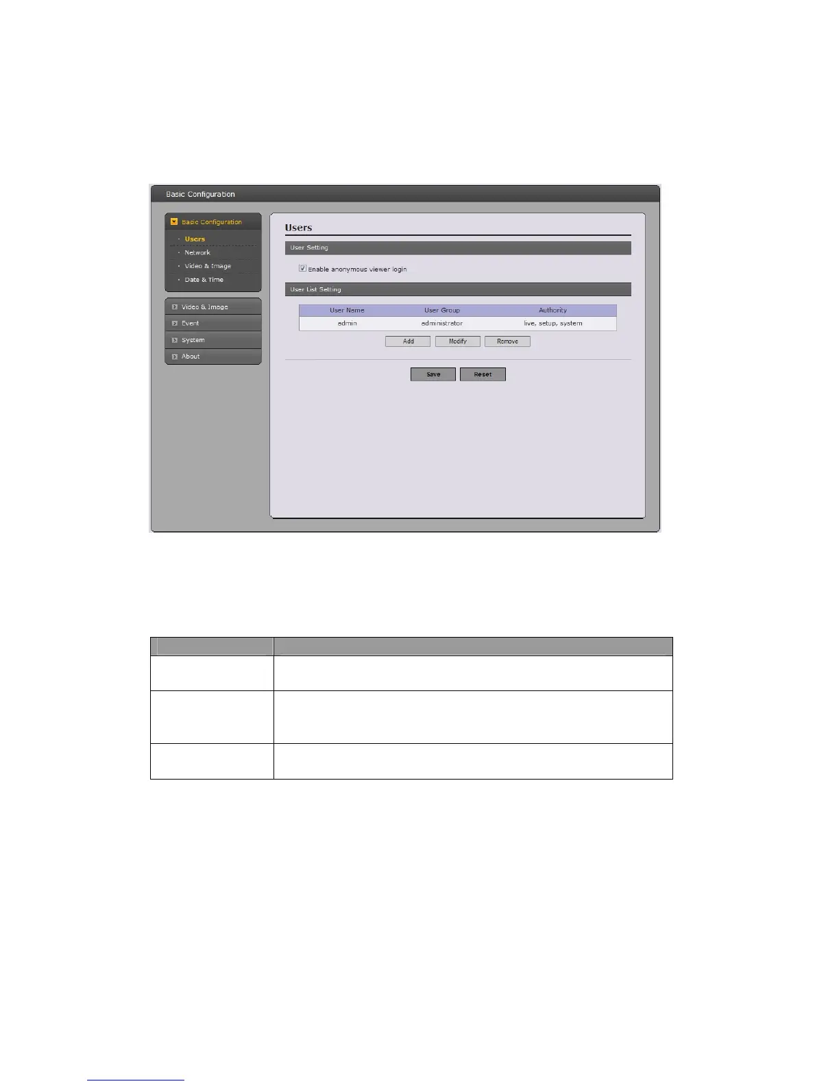 user names and passwords. It is also possible to allow anonymous viewer login, which means that