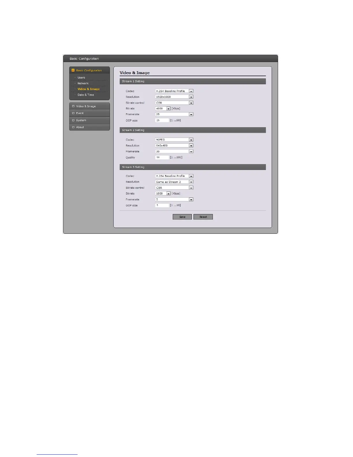 There are 4 pre-programmed stream profiles available for quick set-up.