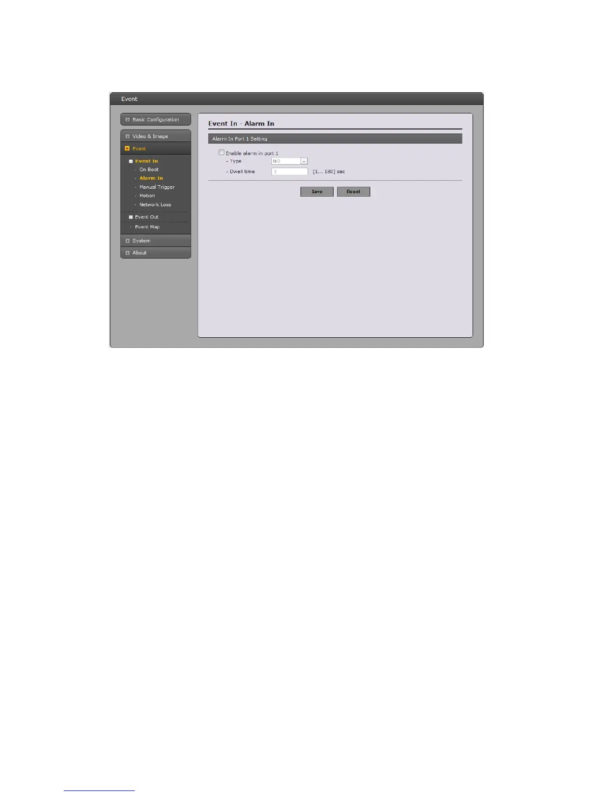 • Alarm In Port 1 Setting