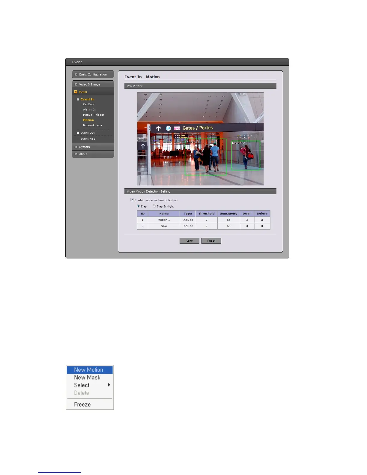 areas. Movement in the areas outside the motion windows will be ignored. If part of a motion window