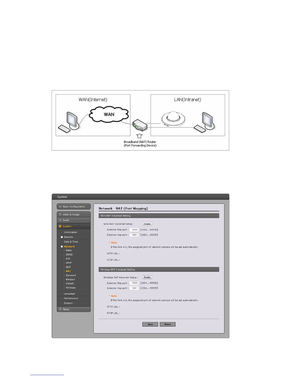 Use NAT traversal when your network cameras are located on an intranet (LAN) and you wish to