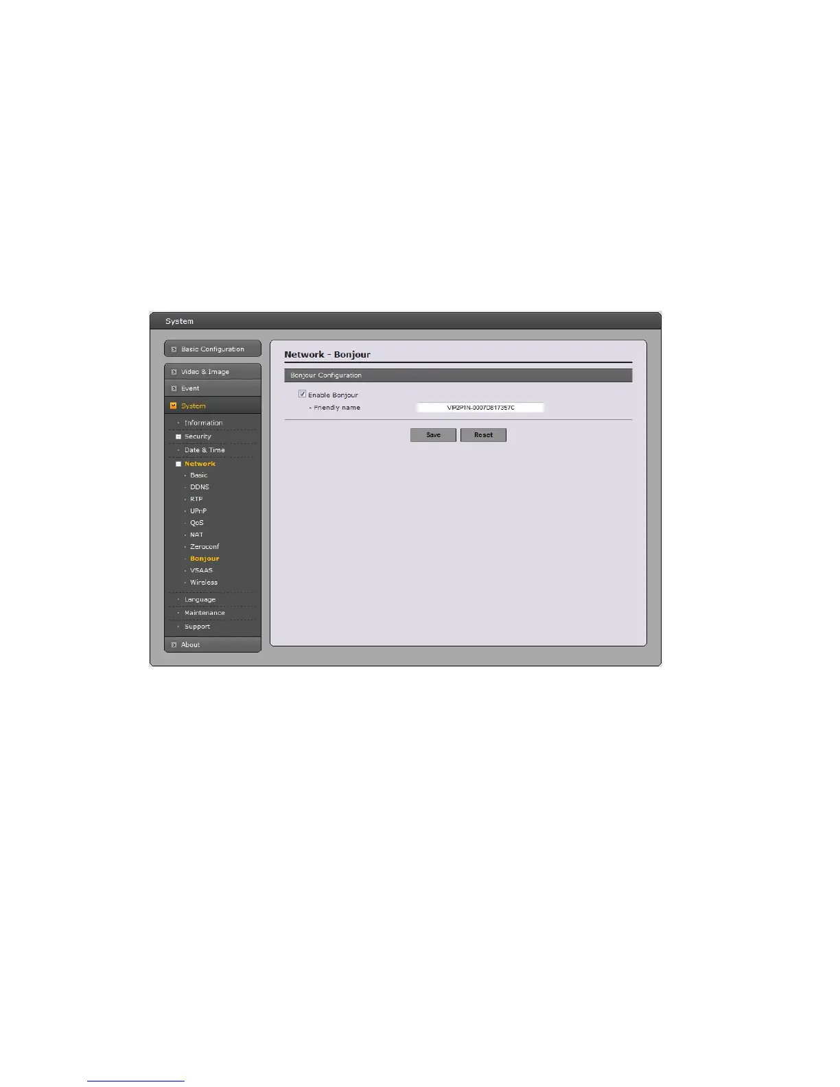This network camera includes support for Bonjour. When enabled, this network camera is