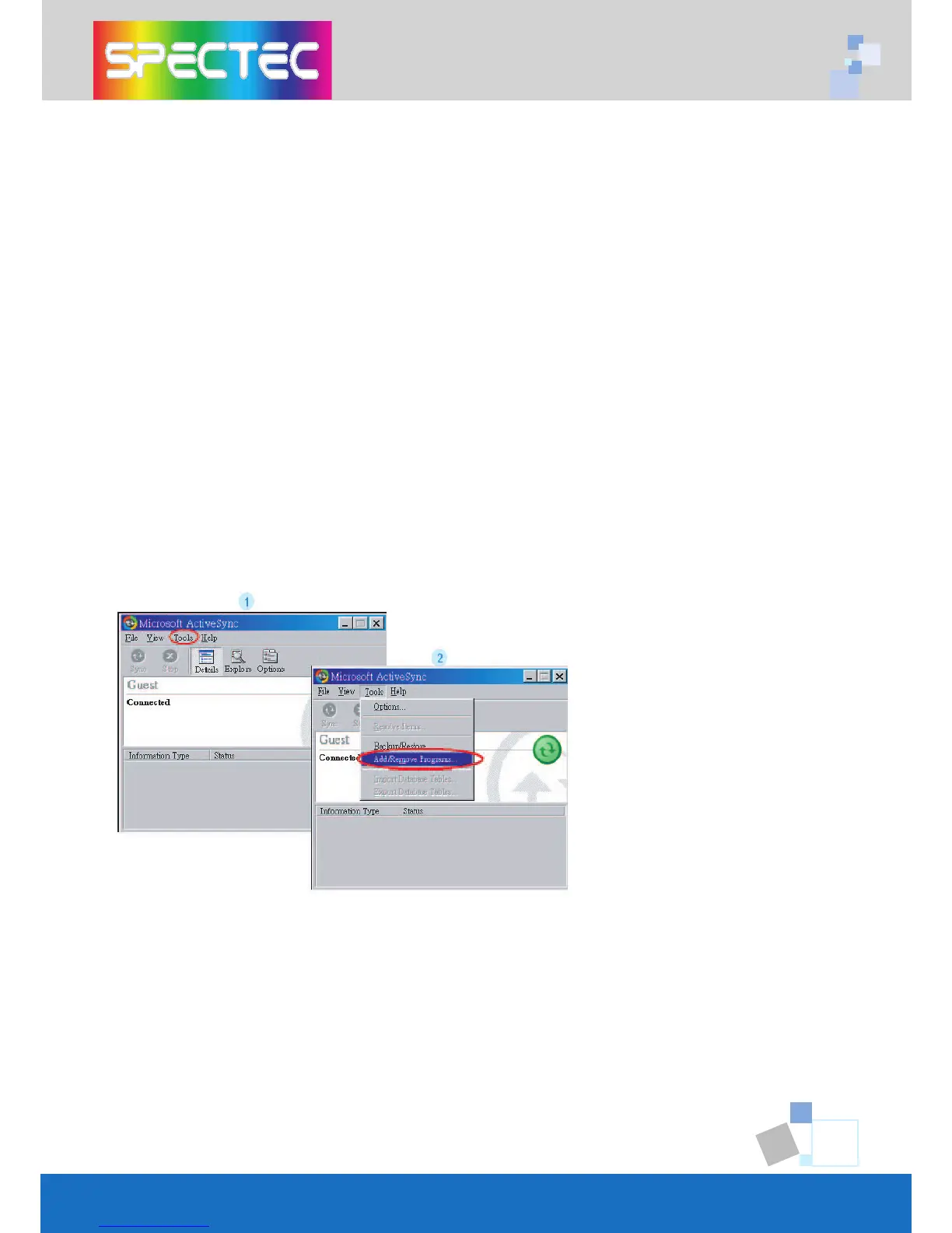 Connect the Pocket PC to the PC with ActiveSync Program, and make sure they arefully
