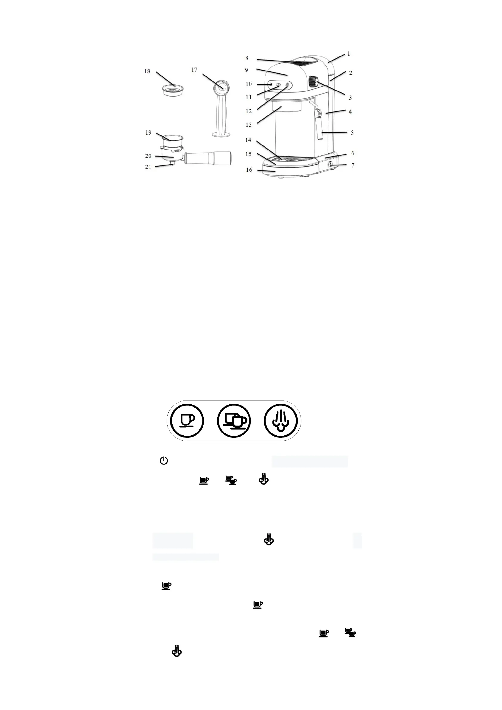 10.Single-cup coffee switch/ indicator lamp 11.Double-cup coffee switch/