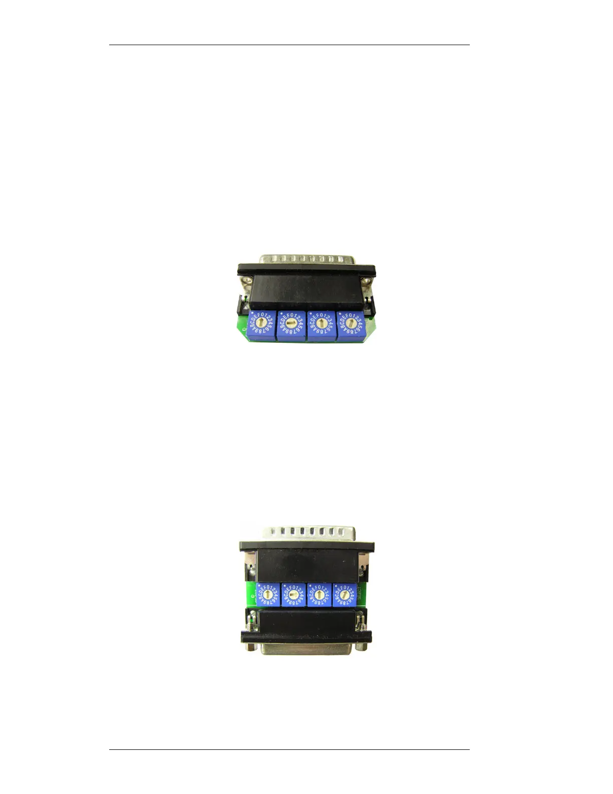 The U72 has a single DB44 male connector and four rotary switches. Two of