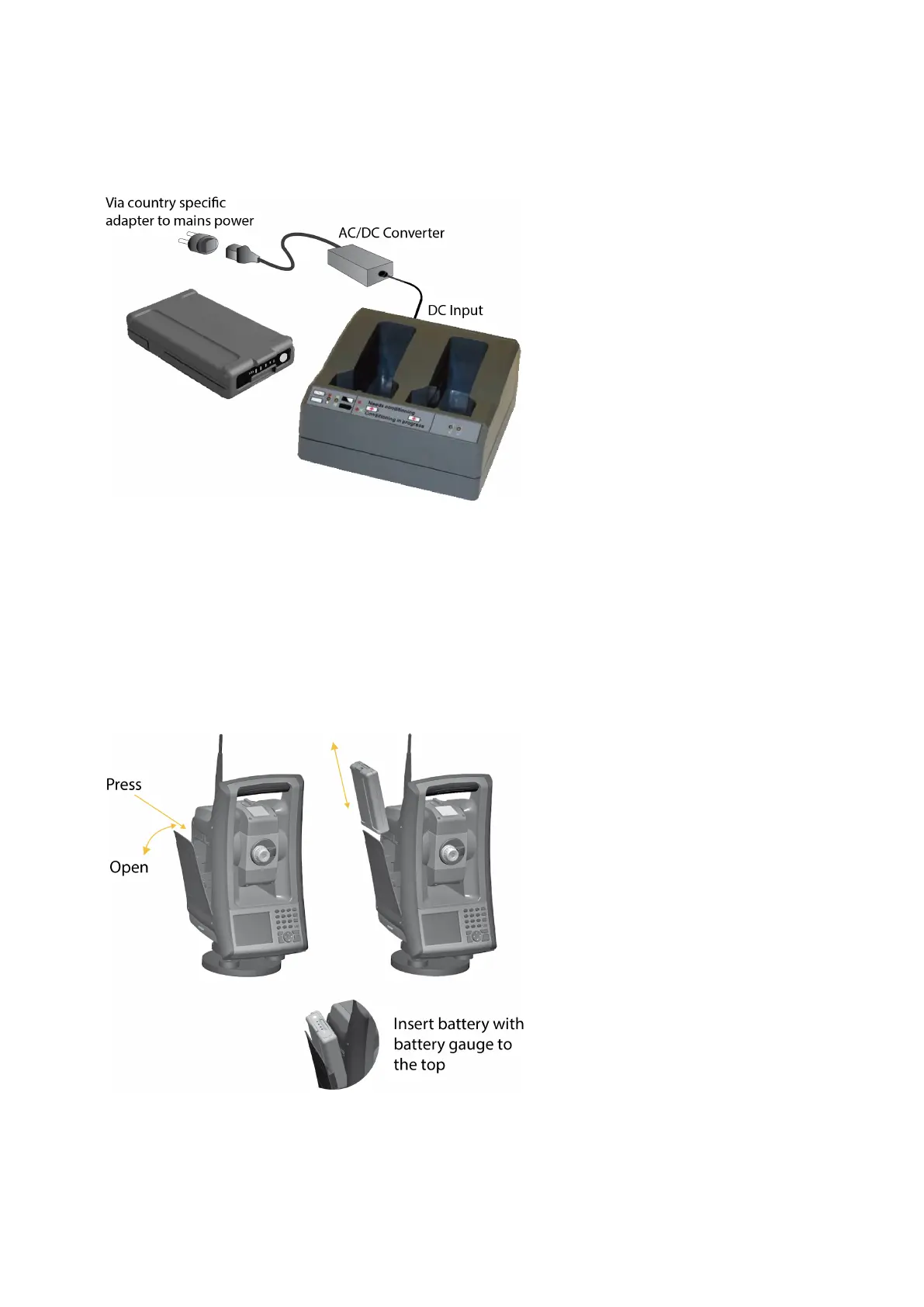 l Charge the battery before using the total station if the equipment has been stored for longer than
