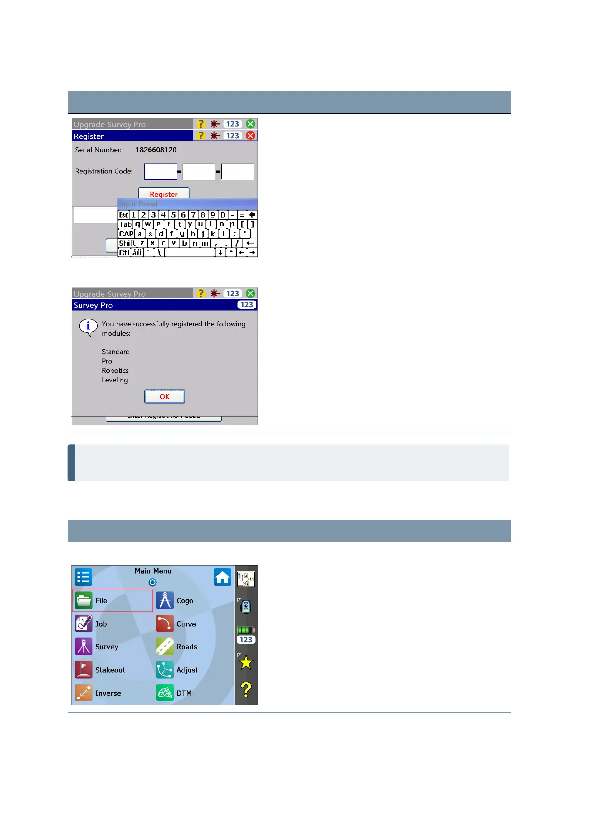 Survey Pro Main Menu Select the Filemenu.