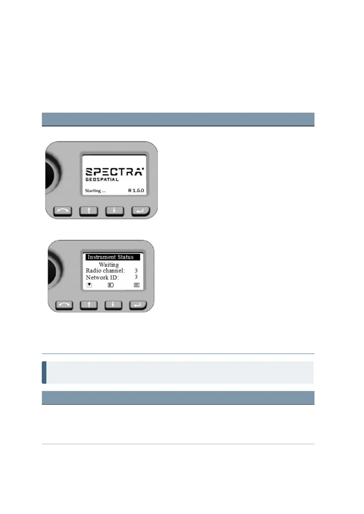 Start screen Face2 Control Unit After starting the screen will display the Spectra