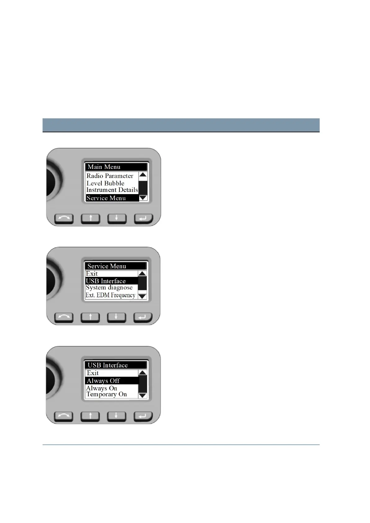 Service Menu - USB Interface Settings To select