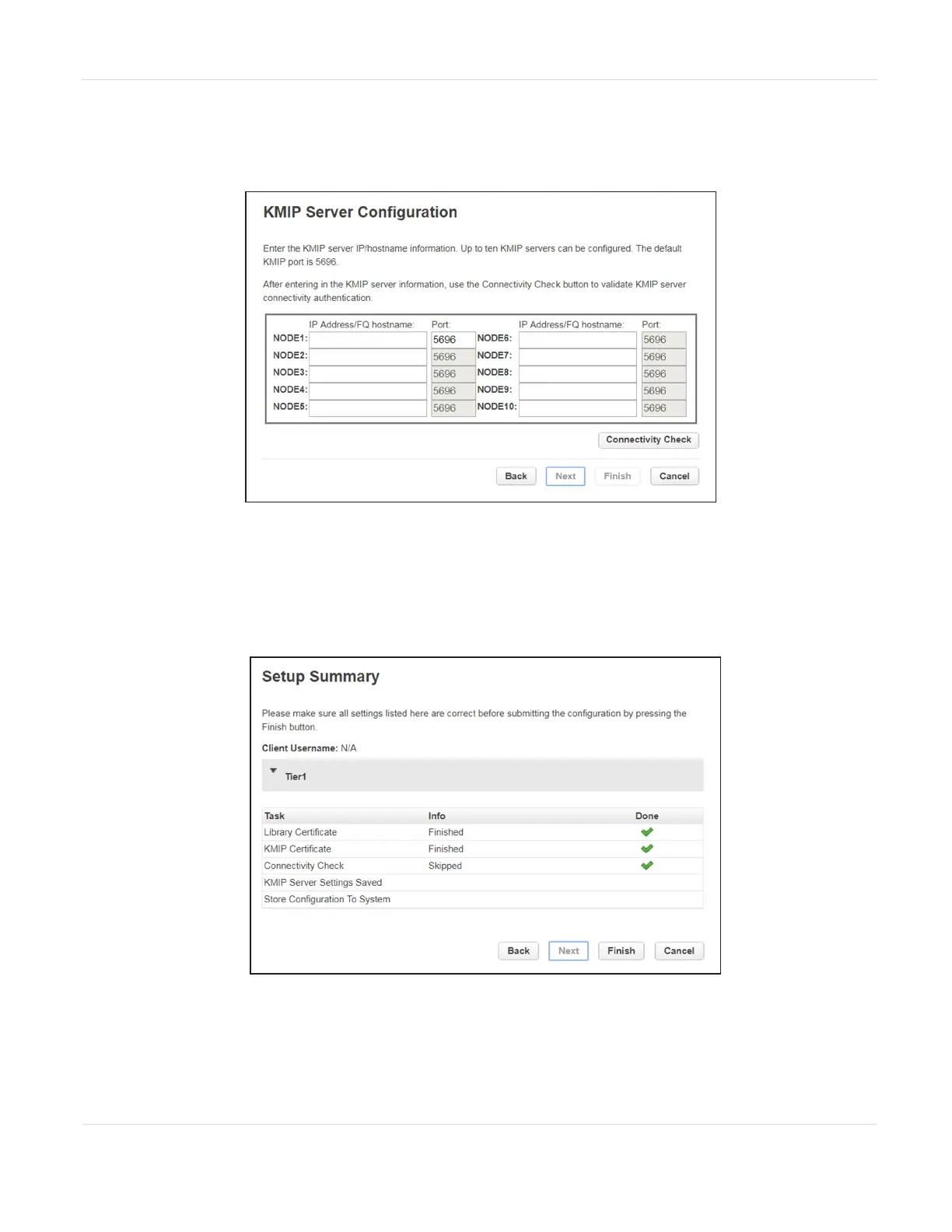 KMIP server(s), click Connectivity Check. Click Next to continue. The Setup