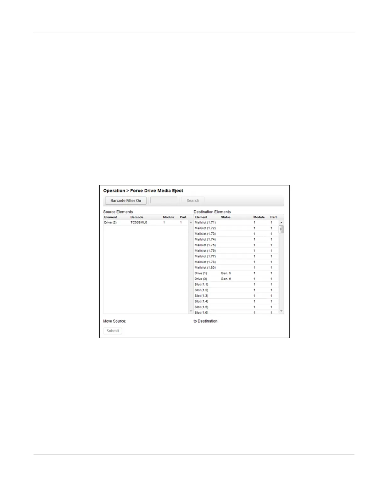 1. Navigate to the Operation > Force Drive Media Eject screen.