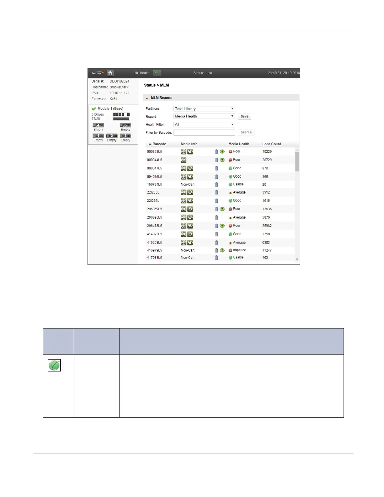 Figure100 Use the health icons on the MLM Reports screen to