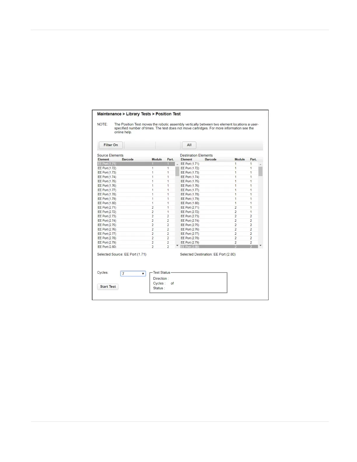 1. To run the position test, navigate to the Maintenance > Library Tests > Position