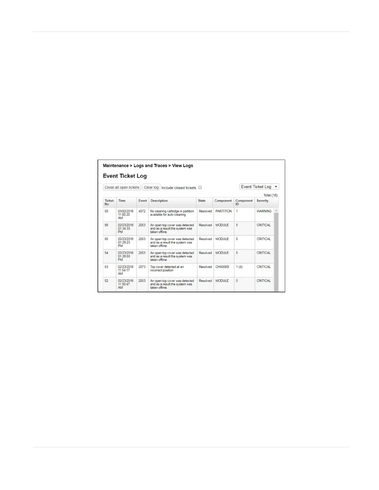 To view the library log files, navigate to the Maintenance > Logs and Traces > View
