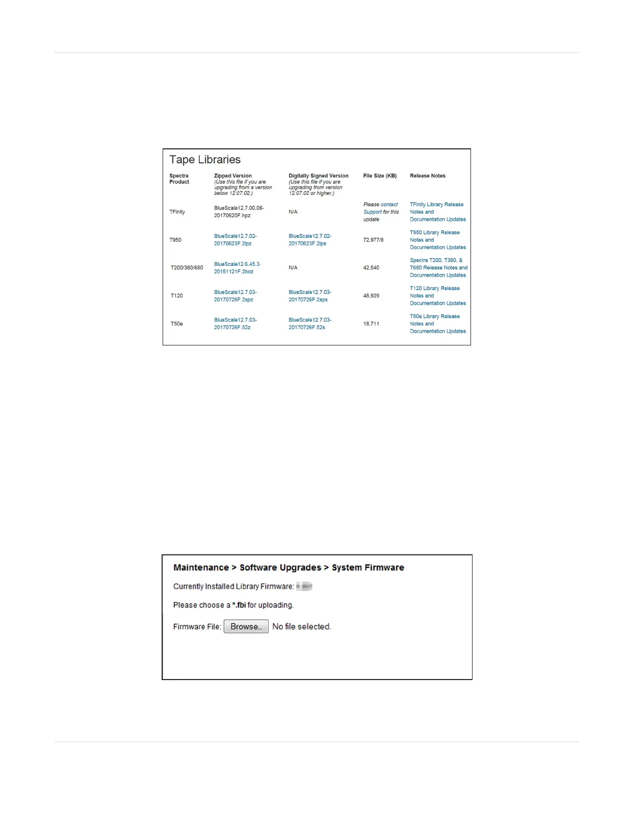 You upload the library firmware from the Maintenance > Software Upgrades >