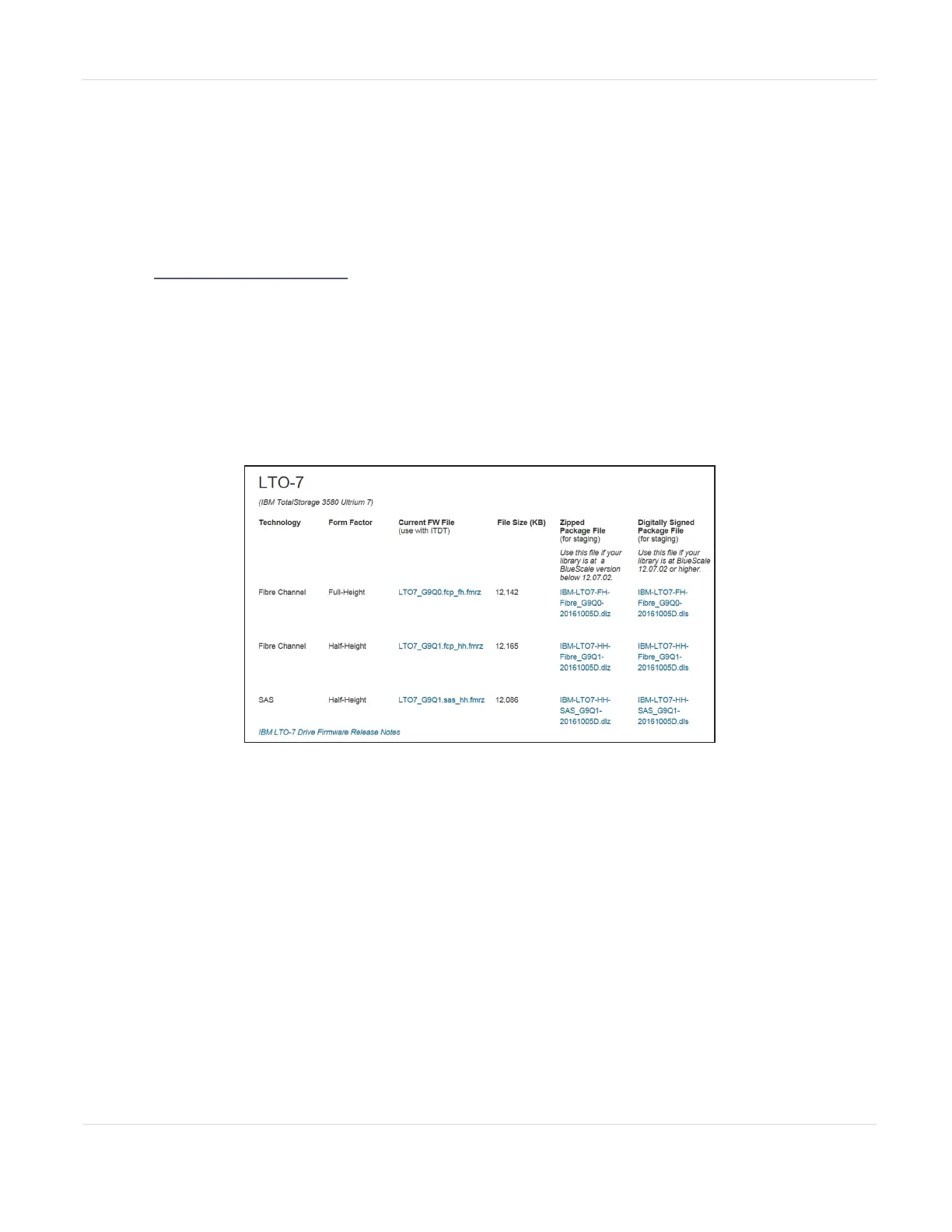 3. On the Tape Drive Firmware page, locate the appropriate drive firmware with