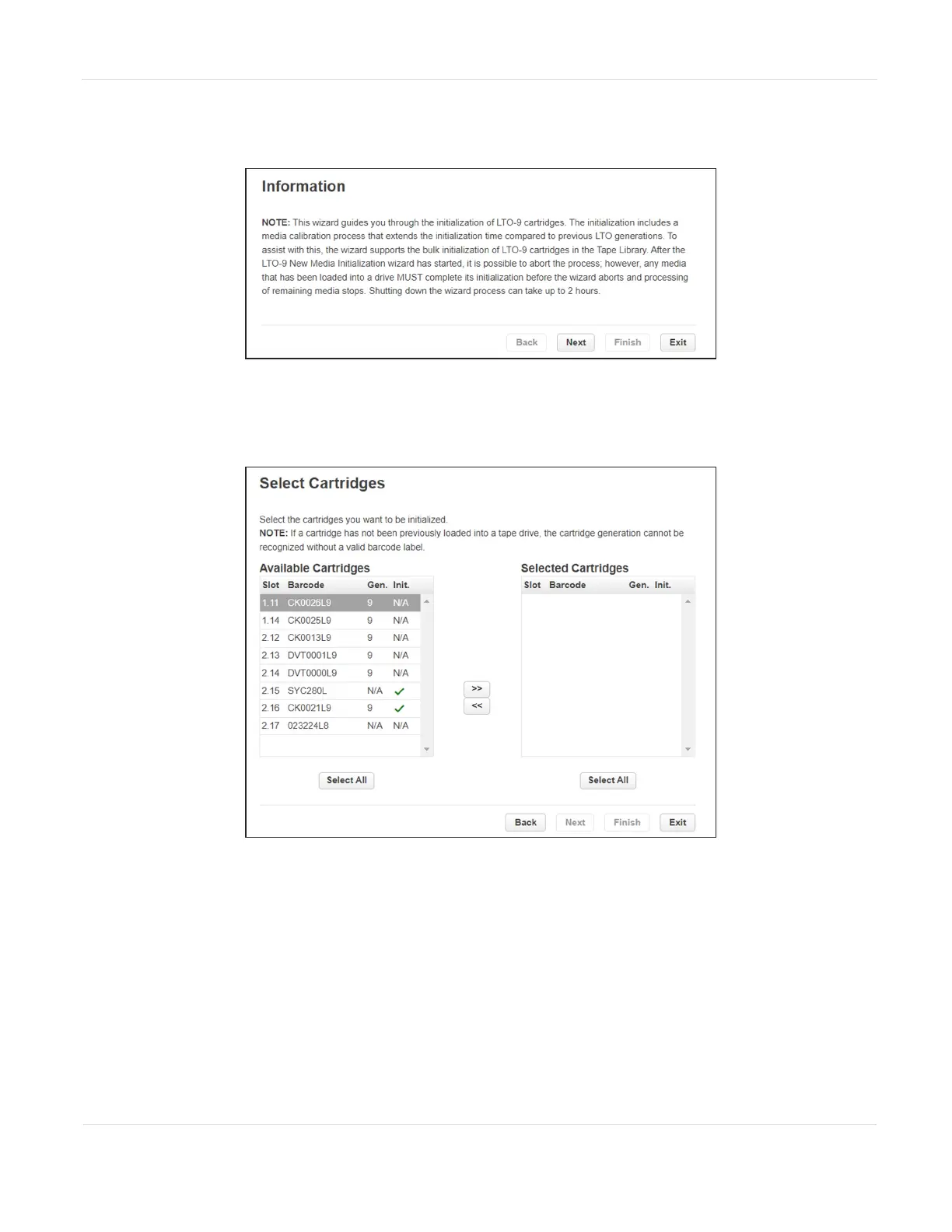 3. Read the note for the wizard and click Next. The Select Cartridges screen