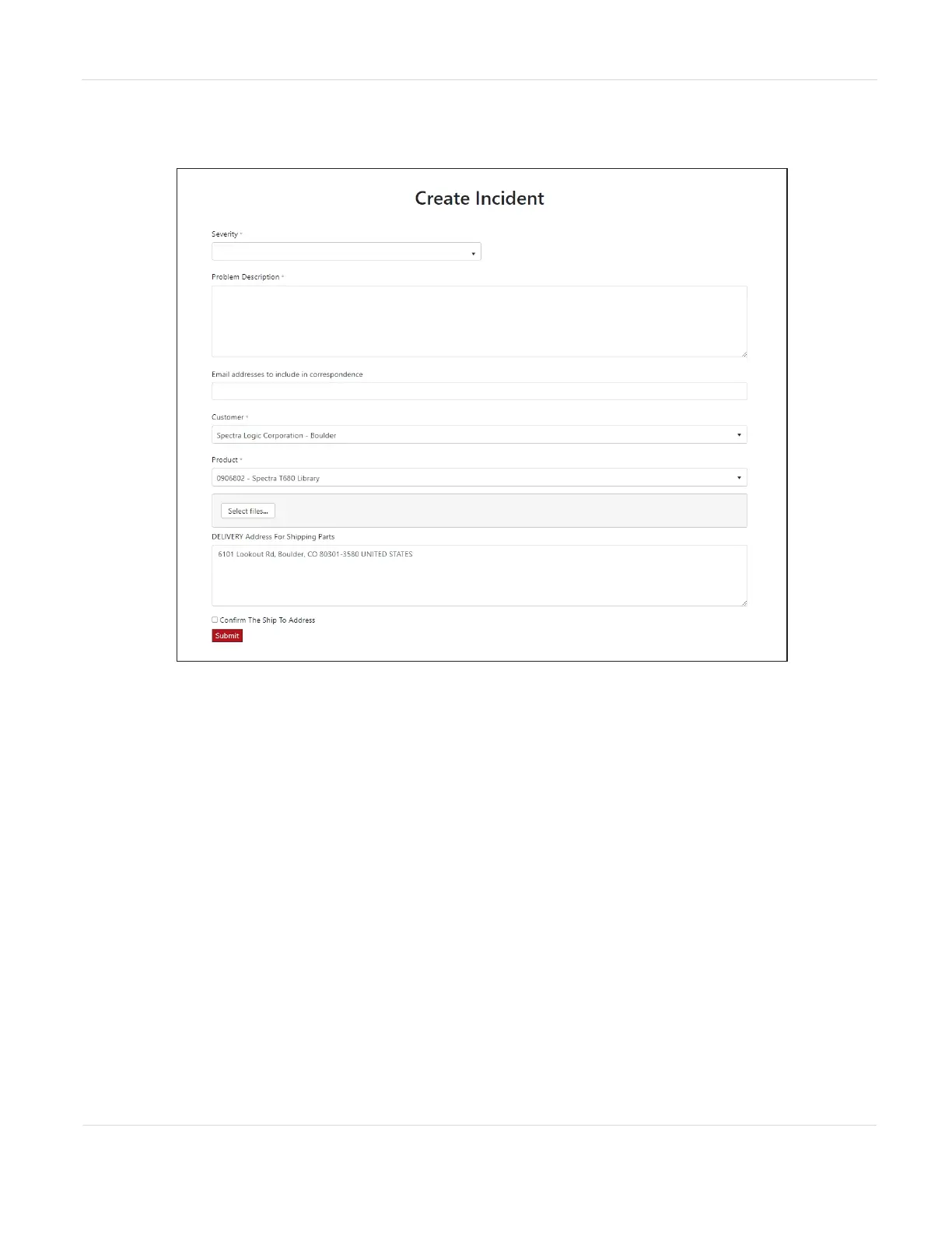 Figure141 Enter information about your incident and click Submit.