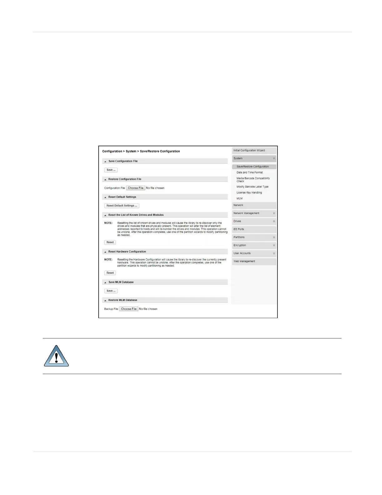 Note: The library configuration backup does not contain the MLM database. To backup the