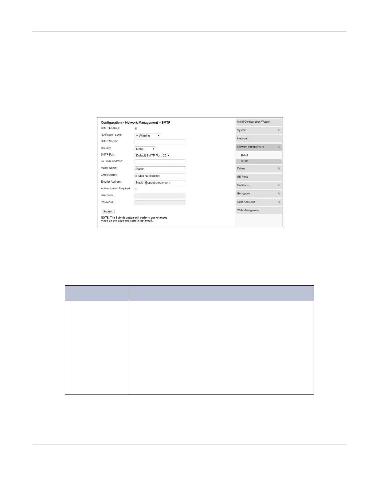 Network Management > SMTP screen. The library must have network access to an